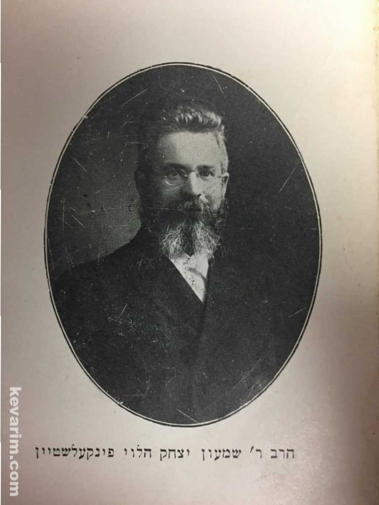Rav Finkelstein was born in 1861. His father was Harav Yehuda Tzvi HaLevi of Slabodka. Blessed with a keen mind, Reb Shimon learned in the yehivos of Kovno and Slabodka until the age of 16, after which he learned on his own. By the age of 19 he was expert in the first half of Shas and was known as the Iluy of Slabodka. When maskilim tried to influence him with anti-Torah attitudes, he went to Rumsheshok, where he studied under the tutelage of Reb Yosef Yozel Horowitz, the Alter of Novardok.