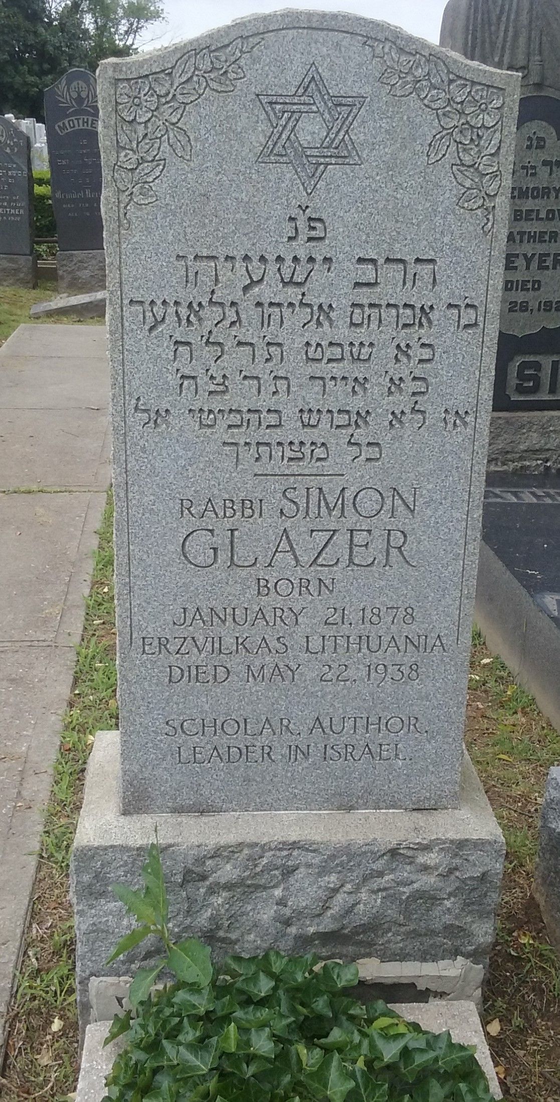Rabbi Simon Glazer died in 1938 in New York City. His career serves as a notable example of the challenges faced by immigrant rabbis as they sought to maintain traditional Orthodox integrity while adapting to the cultural and linguistic demands of 20th-century North America.